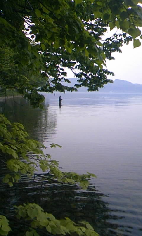 湖にはこーんなわかさぎチャンがいっぱい泳いでいて、なんとなく釣れそうなロケーションだったんだけど、4人で行って、ヒットしたのはひとりだけ・・・(^。^;;