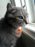 鈴がついてて、一緒に魚の形した迷子札がついてました。