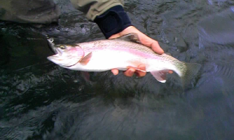 30センチ弱で小ぶりでしたが、元気な虹鱒でした。